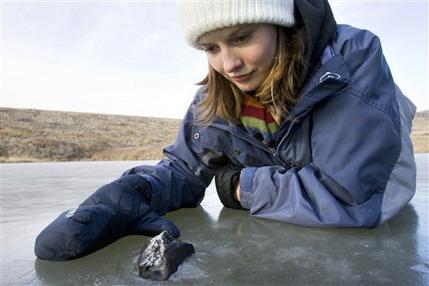 [caption id="attachment_21680" align="alignnone" width="306" caption="Fragments of a meteorite were found in a small pond at Buzzard Coulee, Sask. on Friday. (Geoff Howe/CP)"]