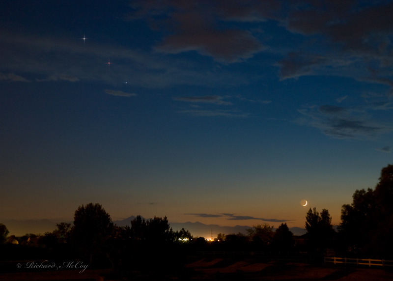 The two incredible images of this weekend's planetary alignment belong to Advanced Optical and Radio Astronomers International Associates members, Richard McCoy (panoramic image) and Shevill Mathers (closeup). We appreciate the time and energy you put into these photos and thank you for sharing with us!