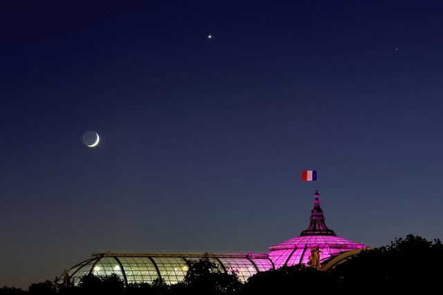 Venus and the waxing crescent Moon above the Grand Palais in Paris, France from May 17th. Image credit: