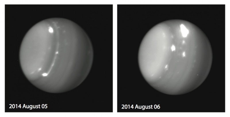 "This extremely bright feature we saw on UT 6 August 2014 reminds me of a similarly bright storm we saw on Uranus's southern hemisphere during the years leading up to and at equinox."