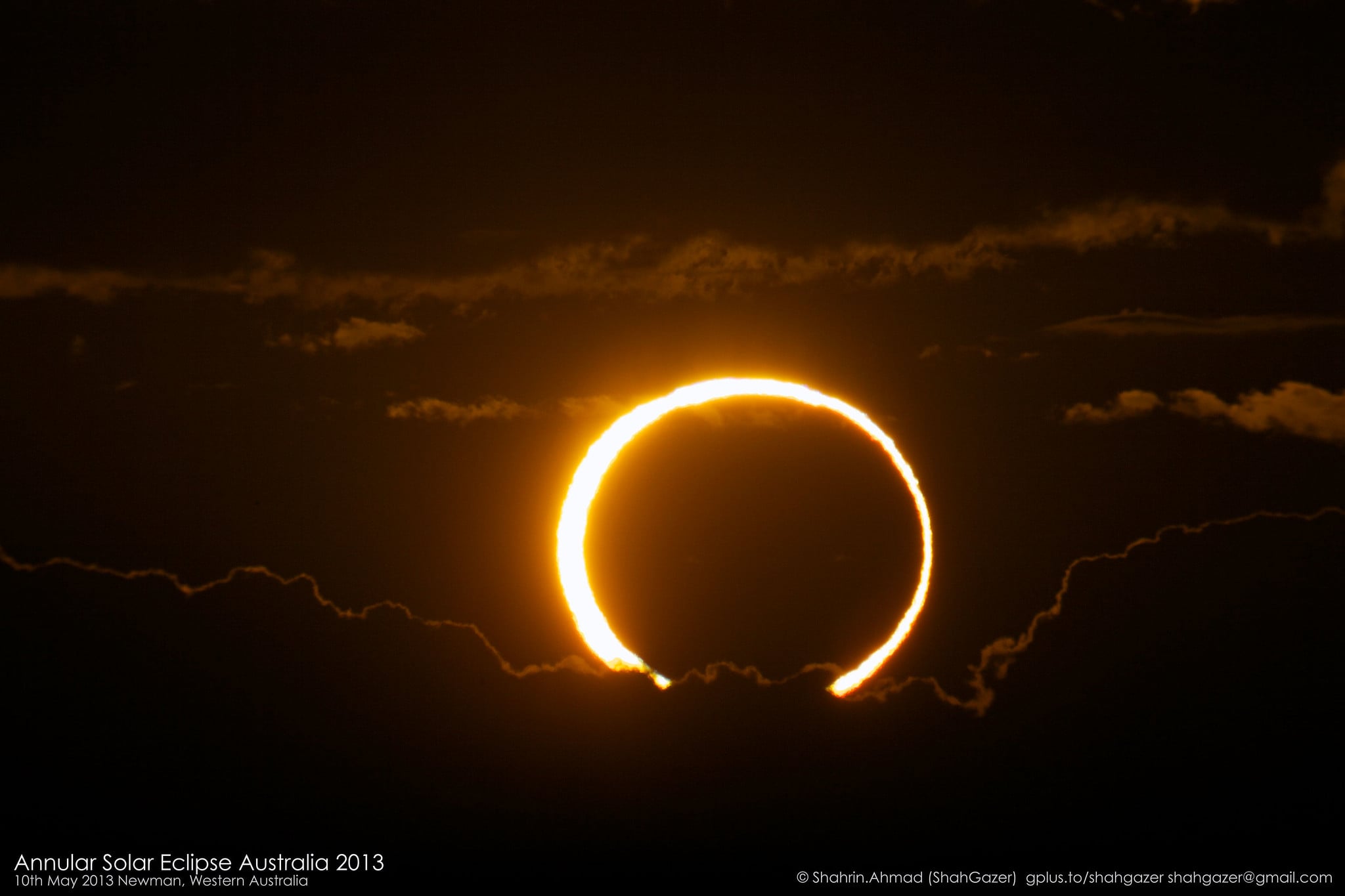 Total eclipses occur when the Moon completely covers the Sun, plunging those standing in the shadow of the Moon into an eerie darkness and revealing the pearly white solar corona. This is the kind of eclipse most folks will get on a plane and head to an exotic location for. Though we often marvel at how the Moon seems to be a great fit versus the Sun as seen from the Earth, this isn't always the case. If New Moon is headed towards apogee and the Sun is a few months within perihelion, the inner umbral shadow fails to reach the surface of the Earth, and an annular eclipse occurs. Observers are then treated to a brilliant 'ring of fire' eclipse.