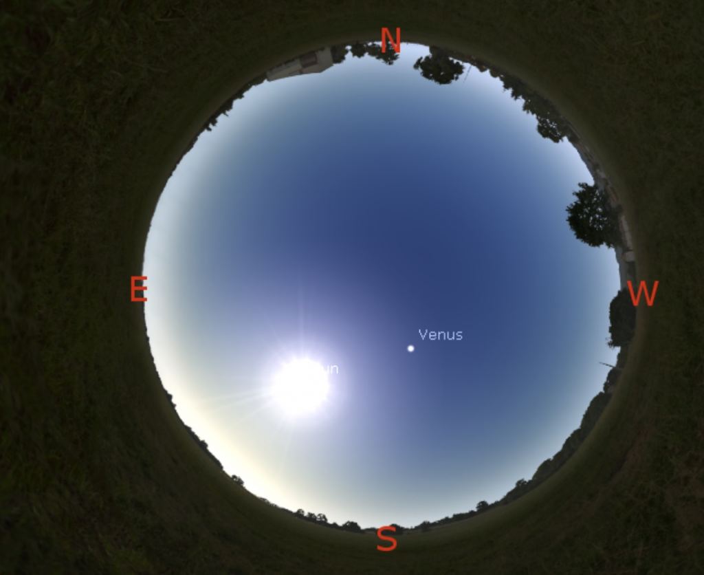 To my eye, the sky tends to take on a deep steely blue tint at the peak of an annular eclipse… would you notice that anything was amiss, if you didn't know better? Keep an eye out for -4.6 magnitude Venus at mid-eclipse, about 46 degrees west of the Sun.