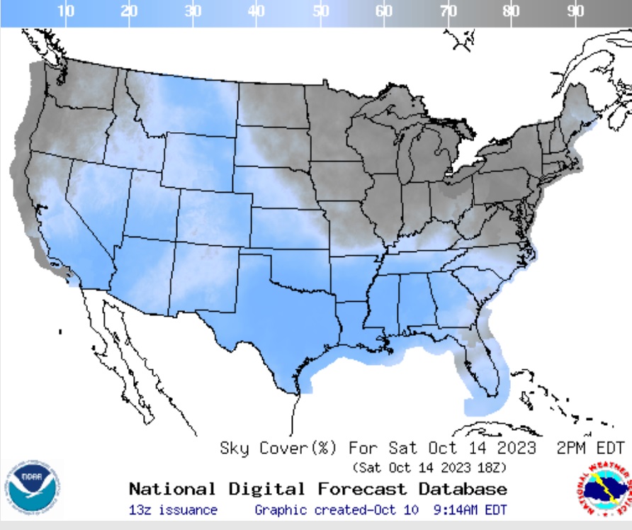 Although we're currently headed towards solar maximum for Cycle No. 25, the Sun is relatively quiet this week, with few photogenic sunspots turned Earthward. Weather and cloud cover eclipse day also currently favors the southern U.S., though views of the crescent Sun filtered through broken clouds can appear especially dramatic.