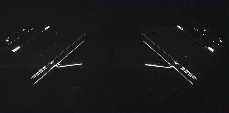Philae is awake... and taking pictures! This image, acquired last night with the lander's CIVA (Comet nucleus Infrared and Visible Analyzer) instrument, shows the left and right solar panels of ESA's well-traveled