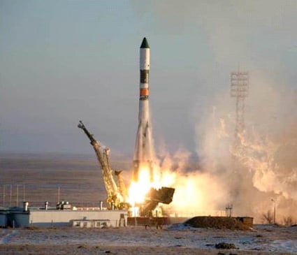 [/caption]The Progress cargo vessel blasted off atop a Soyuz rocket from the Baikonur Cosmodrome in Kazakhstan on Tuesday at 10:45 p.m. EST loaded with 1,940 pounds of propellant, 106 pounds of oxygen and air, 926 pounds of water and 2,683 pounds of science equipment, spare parts and supplies. The resident five man crew of Expedition 22 stayed up late to open the hatch and quickly begin unloading the valuable stash of provisions.