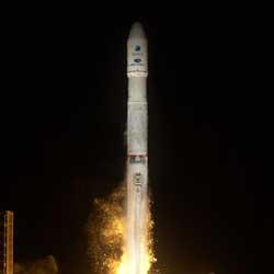 A Zenit-3SL vehicle lifted off at 7:03 am PDT ( 14:03 GMT), from the Odyssey Launch Platform, positioned at 154 degrees West Longitude. All systems performed nominally throughout the flight. The Block DM-SL upper stage inserted the 5,500 kg (12,125 lbs.) satellite to geosynchronous transfer orbit, on its way to a final orbital position of 89 degrees West Longitude. A ground station in Fucino, Italy, acquired the spacecraft?s first signal less than an hour after liftoff, as planned.