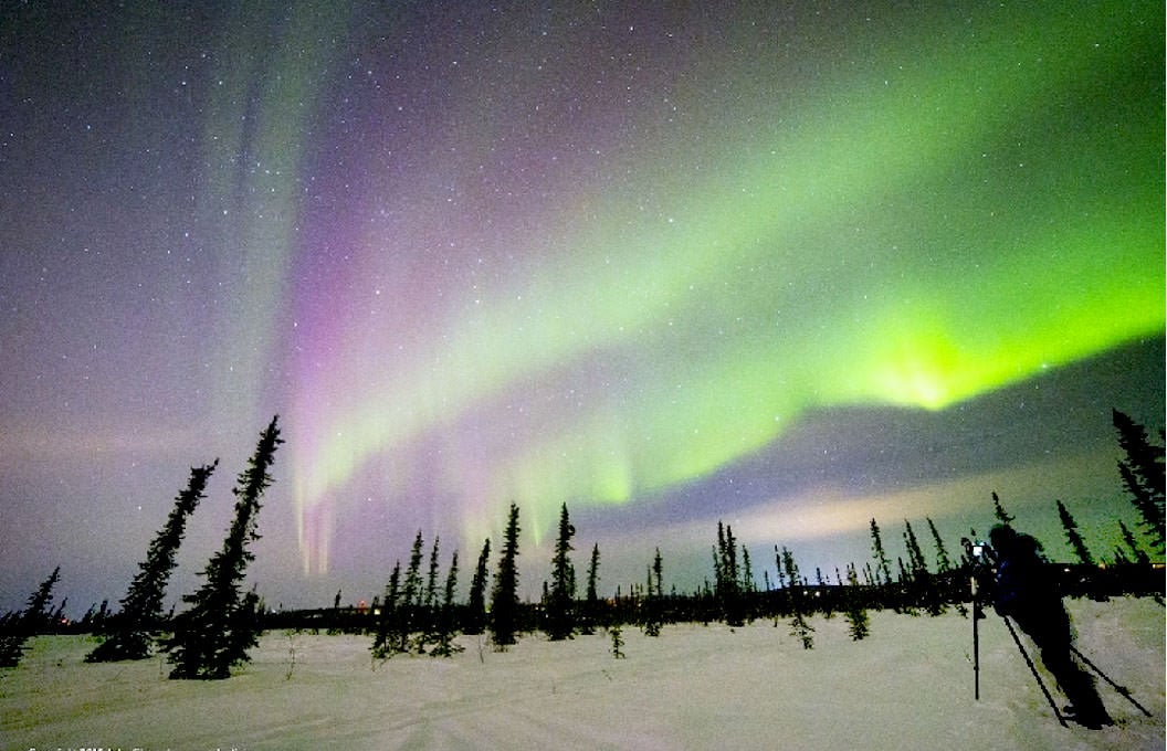 In Northern Canada, auroras are often spotted from the Yukon, the Northwest Territories, Nunavut, and Northern Quebec. However, they are sometimes seen from locations like Dawson Creek, BC; Fort McMurry, Alberta; northern Saskatchewan and the town of Moose Factory by James Bay, Ontario. For information, check out Canadian Geographic Magazine's "