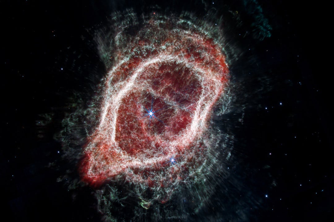 When the long-awaited JWST started delivering images, the Southern Ring Nebula (NGC 3132) was one of its first targets. It was one of five objects that made up the telescope's first science results. The JWST's images revealed something surprising about NGC 3132: it has two stars. The white dwarf is in the center of NGC 3132 and its companion is between 40 to 60 AU away, about the same distance as Pluto is from the Sun.