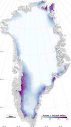 The island of Greenland experienced more days of melting during 2006 on average than in the last 18 years, according to new NASA-funded research.