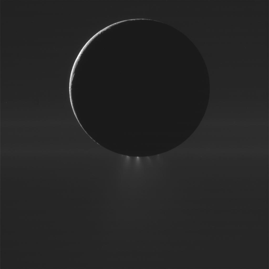 On March 27, Cassini came within 46 miles (74 km) of Enceladus' south pole, the region where the moon's many active water-ice jets originate from. This was Cassini's closest pass yet over the southern pole, allowing the spacecraft to use its ion and neutral mass spectrometer -- as well as its plasma spectrometer, recently returned to service -- to taste the icy spray emanating from deep