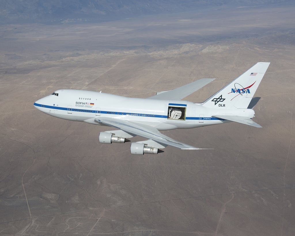 For the study, the team used SOFIA – NASA's Stratospheric Observatory For Infrared Astronomy – a converted Boeing 747SP aircraft with a 2.5-meter infrared telescope mounted behind a sliding door and aimed perpendicularly versus the axis of the aircraft. High-flying SOFIA is ideal for such a study, as it can get far above the bulk of the Earth's atmospheric water vapor, which hinders infrared astronomy.