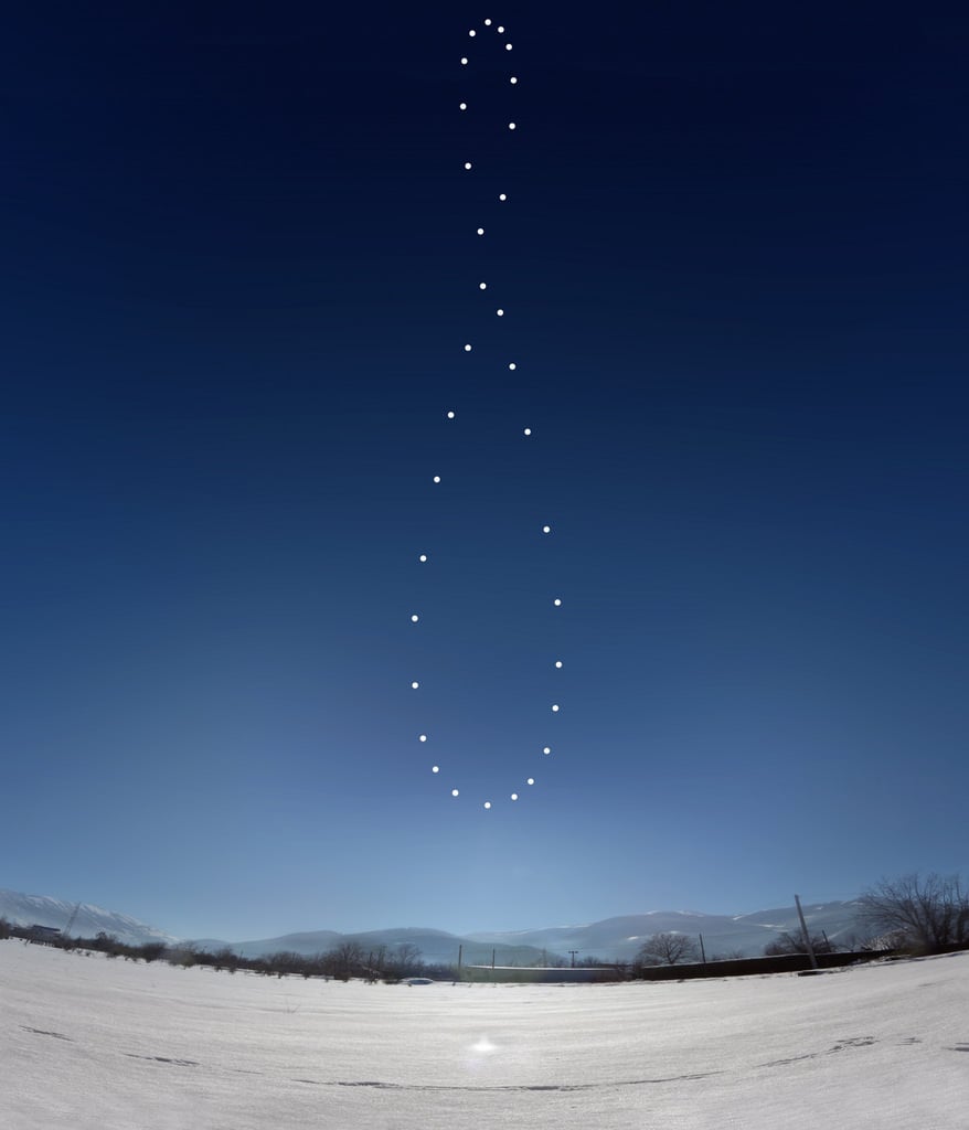 If you took a picture of the Sun every day, always at the same hour and from the same location, would the Sun appear in the same spot in the sky? A very fine image, compiled by astrophotographer Giuseppe Petricca from Italy, proves the answer is no.