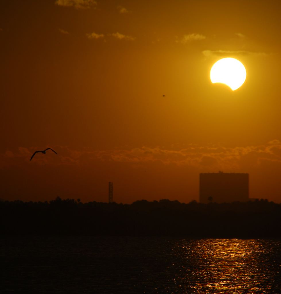 Imaging – The rising horns of the Sun will offer the chance to nab the eclipse with terrestial objects in the foreground. To capture this scene, you'll want a DSLR with at least a 200mm zoom lens, and a variable neutral density filter, the darker the better. Start with a low (100) ISO, and a fast (at least 1/1000 second) shutter speed. Physically cover the camera's view finder to avoid looking through it at the Sun, and only use the digital display for aiming and framing the eclipse.