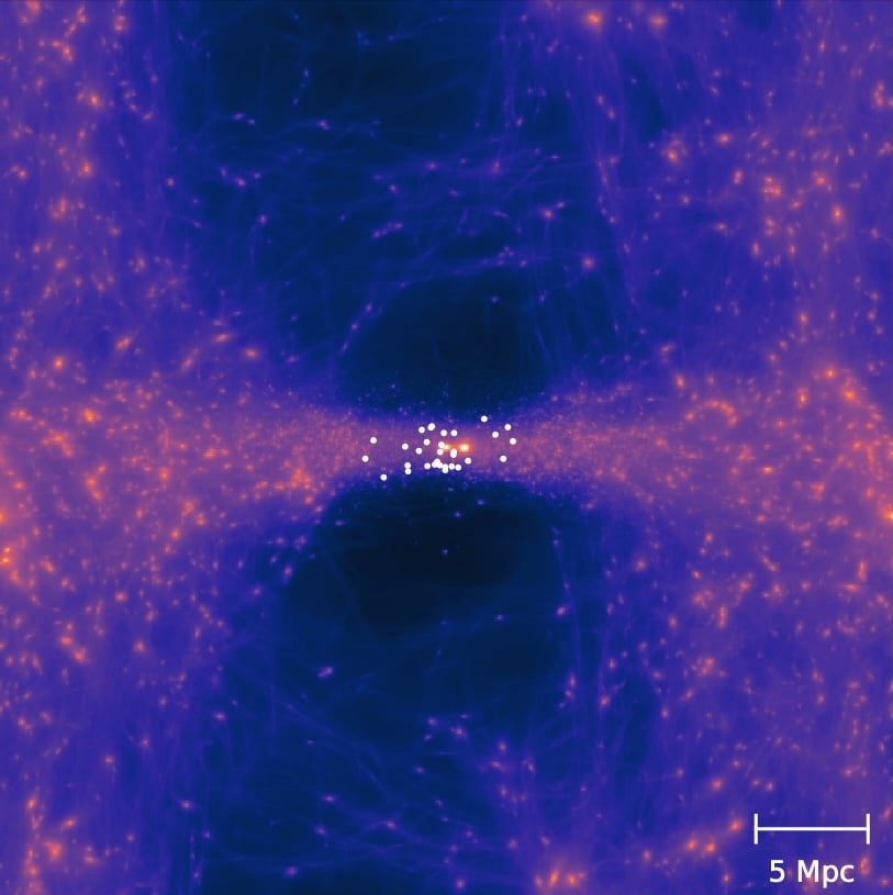 To find this solution, the team created "virtual twins" of our local galactic environment. Their algorithm started with conditions in the early universe based on observations of the cosmic microwave background, then used powerful computers to evolve these conditions forward to the present day. The simulations had to reproduce specific constraints namely the masses, positions, and velocities of the Milky Way and Andromeda, plus the positions and velocities of 31 galaxies surrounding the Local Group.