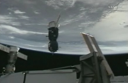 It looked like a flawless docking procedure between the Soyuz spacecraft and the ISS over the scenic backdrop of the Earth. Soyuz gently floated toward its dock with the Russian-built Zarya module along side the Soyuz TMA-12 that carried Expedition 17 to the station back in April. The already parked Soyuz will be the return vehicle in eight days time (on October 23rd) for cosmonauts Sergei Volkov and Oleg Kononenko who will chaperone Richard Garriott back to solid ground at the end of his space "vacation." Volkov and Kononenko, members of Expedition 17 have spent six months in space.