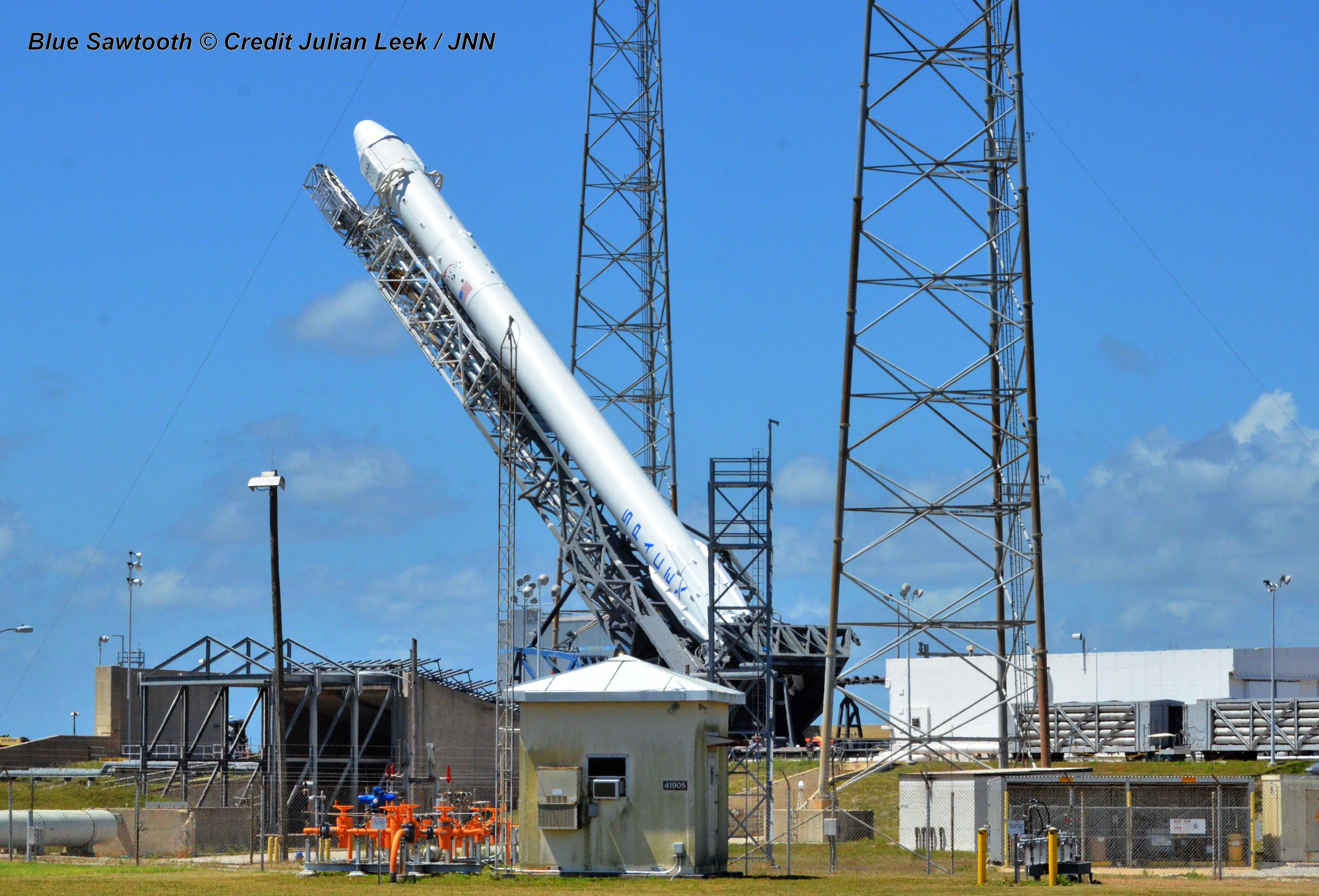SpaceX Falcon 9 rocket preparing for April 14, 2014 liftoff from Space Launch Complex 40 at the Cape Canaveral Air Force Station, Fla. Credit: Julian Leek