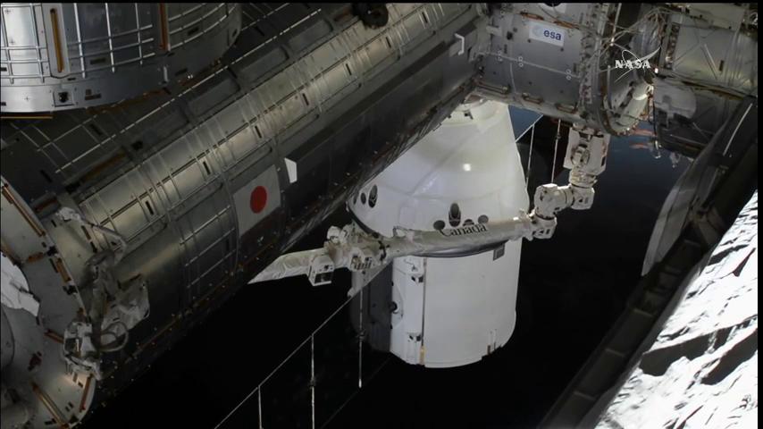 "Dragon is now firmly attached to the International Space Station and the crew will begin unloading critical science payloads and supplies this afternoon."