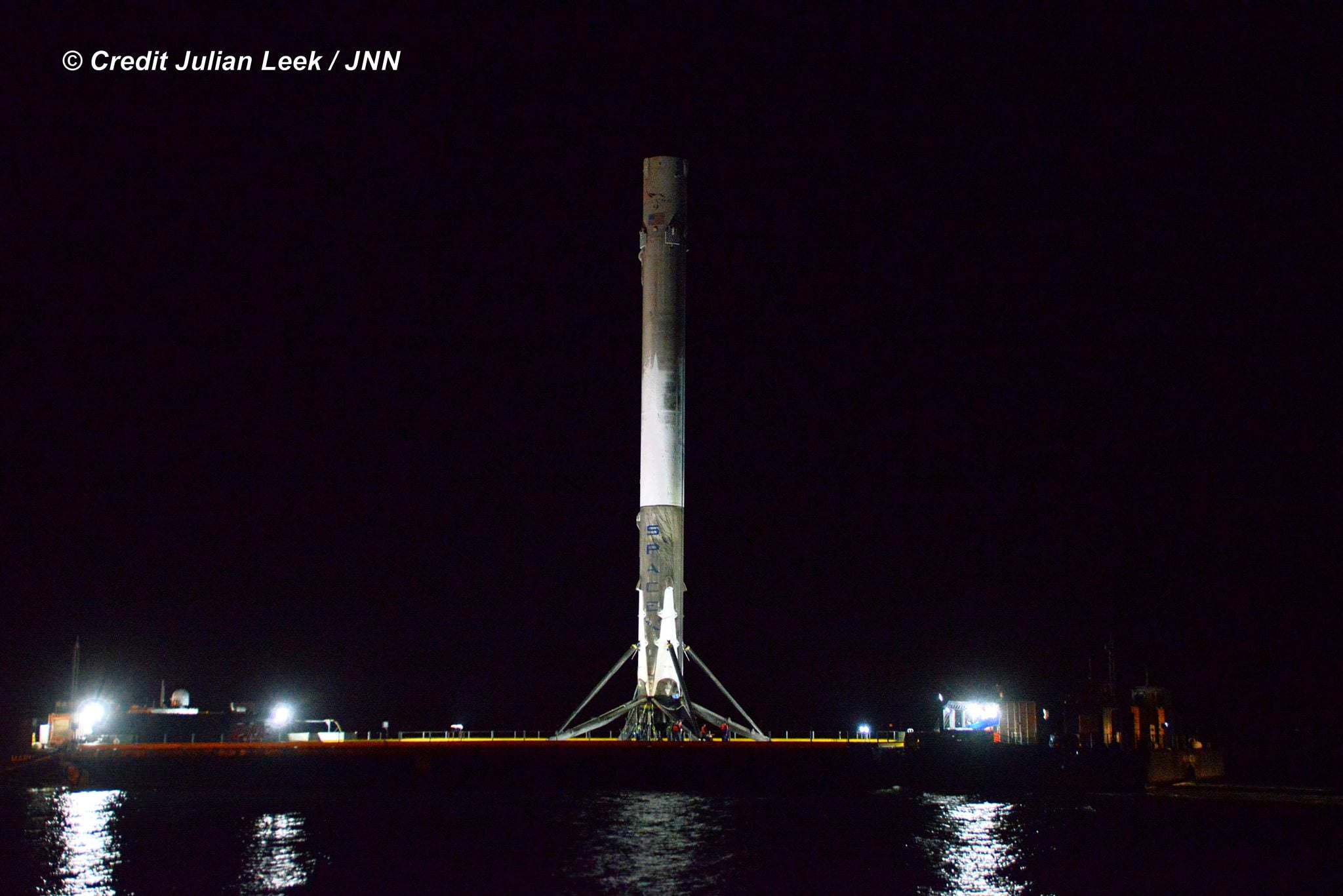 on a barge at sea - after launching a critical cargo payload to orbit for NASA - sailed back into port at Cape Canaveral overnight in the wee hours of this morning, April 12, standing tall.