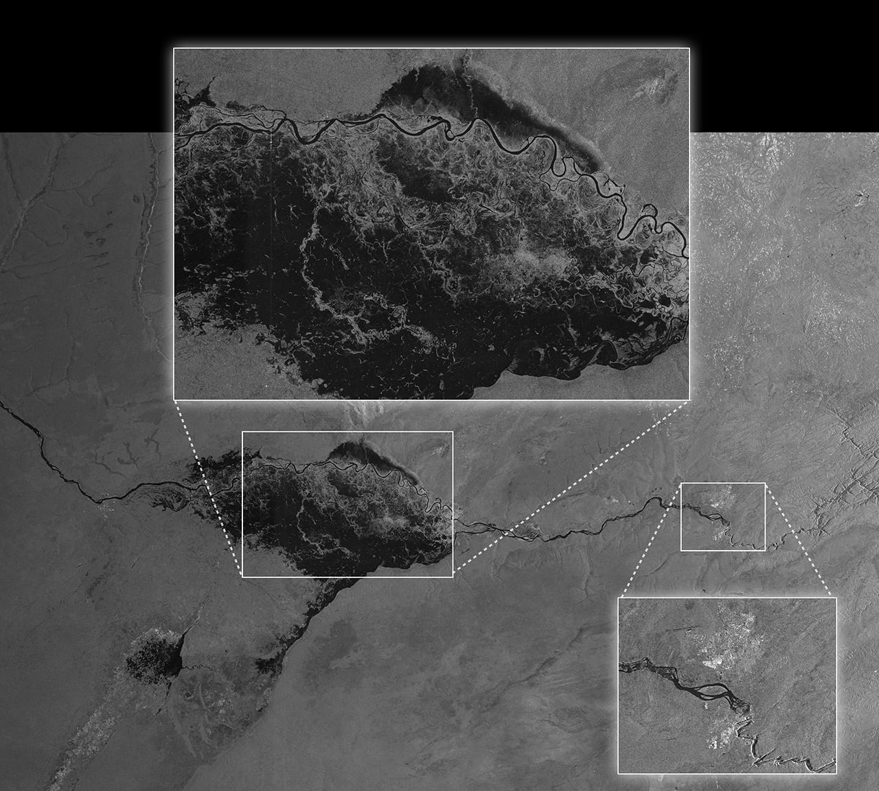 "Sentinel-1A's ability to 'see' through cloud and rain and in pitch darkness make it particularly useful for monitoring floods and for offering images for emergency response," the European Space Agency stated. "In fact, this area of the Caprivi plain was shrouded in thick cloud when the satellite acquired the image on 13 April."