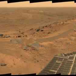 "We're finding abundant evidence for alteration of rocks in a water environment," said Ray Arvidson of Washington University, St. Louis, Mo. Arvidson is deputy principal investigator for the rovers' science instruments. "What we want to do is figure out which layers were on top of which other layers. To do that it has been helpful to keep climbing for good views of how the layers are tilted to varying degrees. Understanding the sequence of layers is equivalent to having a deep drill core from drilling beneath the plains."