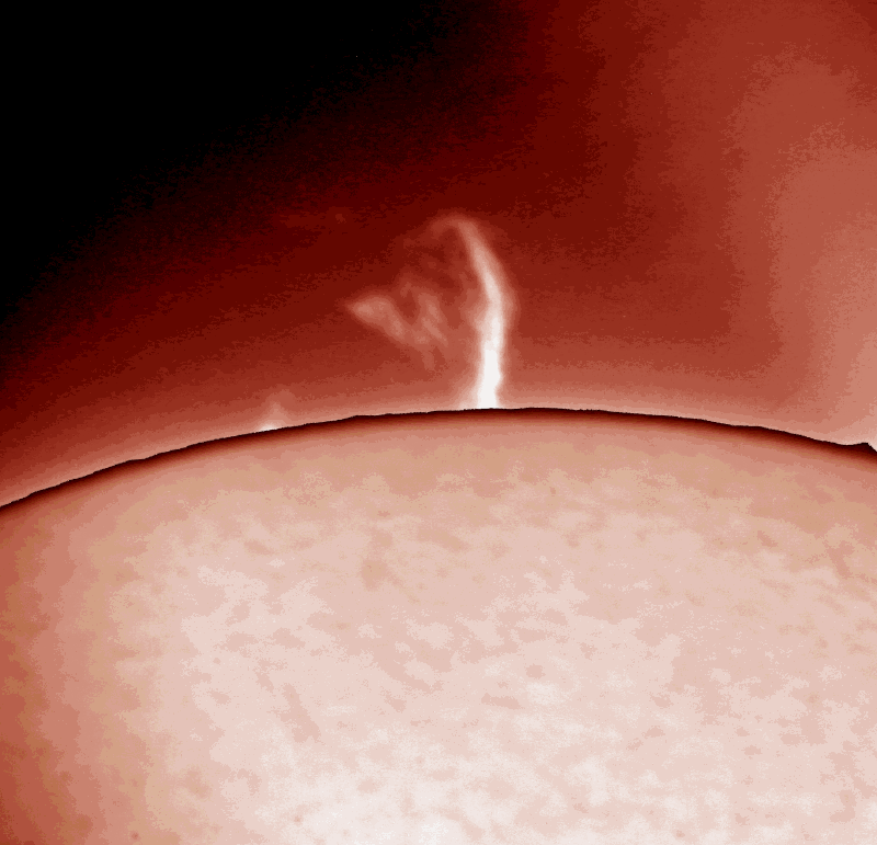 Just in time for Halloween, the Sun has been putting on some spectacular shows recently, including this ghostly-looking prominence captured by amateur astronomer Monty Leventhal from Australia. He estimates this giant pillar shot up over 158,000 km (98,000 miles) from the Sun's surface! Monty took the image on October 26, 2011 using a Meade SC 10 inch telescope, with a Hydrogen Alpha filter and a Canon 300D camera.
