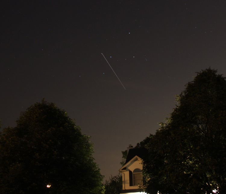 [caption id="attachment_95458" align="aligncenter" width="580" caption="Docked Commercial SpaceX Dragon and International Space Station (ISS) streak across the pre dawn sky at 4:07 AM EDT near Princeton, NJ on May 26, 2012, less than 24 hours after the Dragon was attached to the Harmony node. 25 sec exposure. Credit: Ken Kremer "]