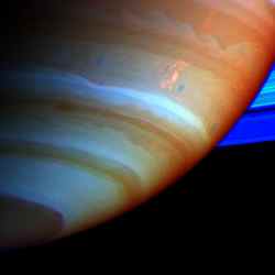 The fuel for Saturn's storms is quite different. The interior of the planet acts like an ocean and stores energy, but the energy does not come from the sun. "Saturn makes it own heat, which it got when the pieces that made the planet crashed together during the violent history of the early solar system," says Ingersoll.