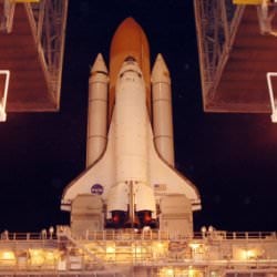 Space shuttle Discovery moving from the Vehicle Assembly building. Image credit: NASA.