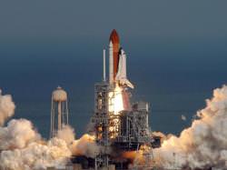 Defying a bleak weather forecast, space shuttle Atlantis rocketed into space on Thursday, February 7, on its way to the International Space Station with a new science laboratory. The STS-122 mission had been delayed by a faulty fuel sensor, and was originally scheduled to launch last December. But today there were no problems with the sensor during fueling and the shuttle lifted off flawlessly at 2:45 p.m. EST. On board is a seven member crew and the European Space Agency's $1.9 billion Columbus science module, Europe's main contribution to the ISS. Atlantis will rendezvous with the station on Saturday, Feb. 9. The launch came seven years to the day after Atlantis carried NASA' science laboratory named Destiny to the space station.