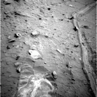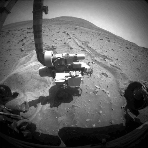 [caption id="attachment_44585" align="aligncenter" width="560" caption="This is from Spirit's forward hazcam, from sols 2078 and 2079. You can see the buried wheel in the bottom left portion of the image. Credit: NASA / JPL / animation by Damien Bouic "]