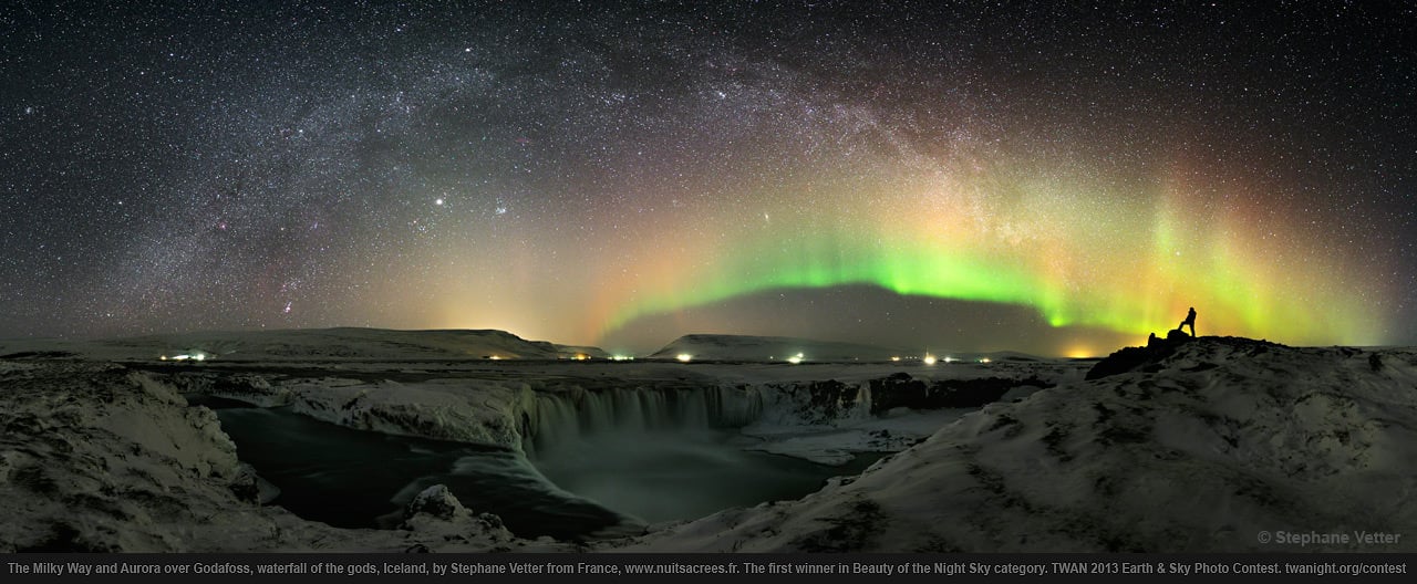of France, for his March 2013 panoramic photo "Sky Above Godafoss" of aurora and the Milky Way over the "Waterfall of the Gods" in Iceland.