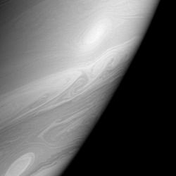 Saturn, up close and personal. In this Cassini image, you can see the subtle, swirling storms that roll across Saturn's atmosphere. Unlike the Earth, Saturn is still a planet in formation; it's continuing to slowly contract, which generates the massive amounts of heat that drive its dramatic weather systems. Cassini took this photograph on March 7, 2006 when it was 2.9 million kilometers (1.8 million miles) from Saturn.