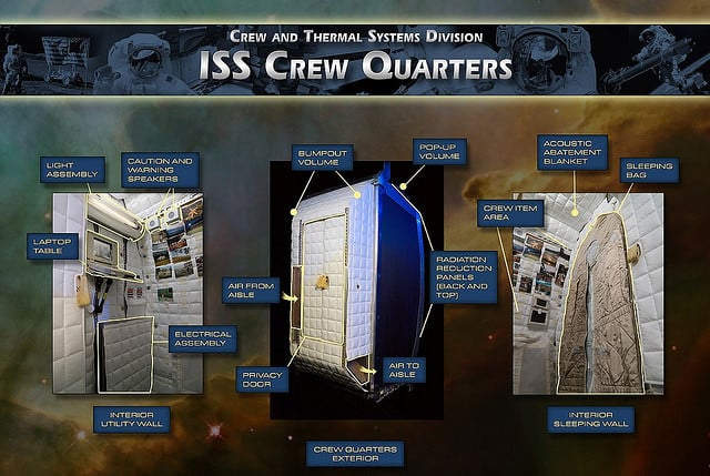 Phone booths. You know, those things that Superman used to change into his cape and tights. According to news reports, the last phone booths in use in the US will be decommissioned and hauled away sometime this year. If you've ever had the chance to actually use one of these communication relics, you know how cramped they are inside. But they provide a good size comparison to the tiny crew quarters on board the International Space Station.
