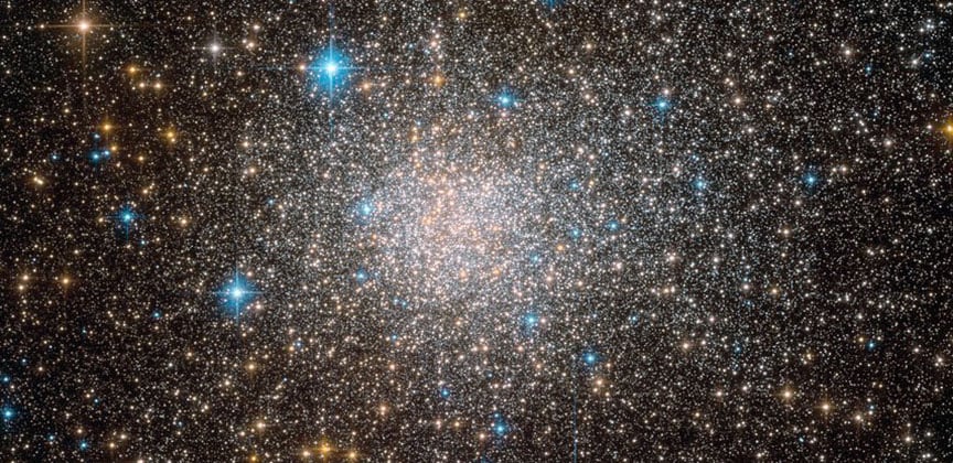 Peering through the thick dust clouds of the galactic bulge (center of the galaxy) an international team of astronomers has revealed the unusual mix of stars in the stellar cluster known as Terzan 5. The new results indicate that Terzan 5 is in fact one of the bulge's primordial building blocks, most likely the relic of the very early days of the Milky Way. Credit: NASA/ESA/Hubble/F. Ferraro[/caption]