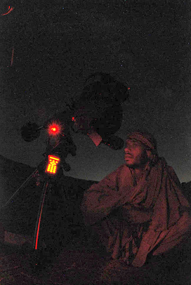 After aligning the telescope, a car slowly approached, shining its lights on Aghaei and his friends, which included scientist Yunos Bakhshi and another amateur astronomer, and several Afghani people who were just interested in seeing the night sky.