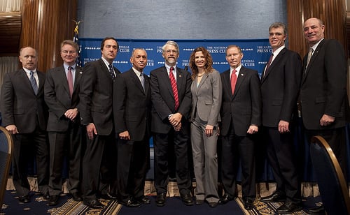 will receive $3.7 million for a new type of crew escape system. Robert Millman from Blue origin said, "We are dedicated to creating technology for enduring human presence in space. We are developing a "pusher" escape system, with an escape motor at back of capsule to avoid a jettison event." They are also working on a composite pressure vessel to improve the durability for a conventional crew cabin. [caption id="attachment_53560" align="alignnone" width="500" caption="NASA Administrator Charles Bolden speaks during a press conference, Tuesday, Feb. 2, 2010, at the National Press Club in Washington. Credit: NASA/Bill Ingalls"]