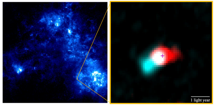 The international team of astronomers recently used ALMA, the Atacama Large Millimeter/submillimeter Array, and caught a baby star in the process of formation. They observed extremely fast outflows from the newborn star. These outflows are driven by incredibly strong electric and magnetic fields in the gas cloud as it compresses.