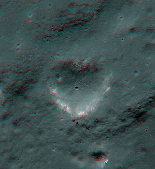 [caption id="attachment_83291" align="aligncenter" width="580" caption="A heart-shaped crater in the Galilae region on the Moon. Credit: ASA/GSFC/Arizona State University; 3-D by Nathanial Burton-Bradford."]