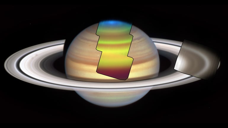 "Because it is big, bright, rotating, and moving across the sky, it provides a challenge for the small fields-of-view of the MIRI instrument, " said Oliver King, a postdoctoral researcher at Leicester and co-author of the study. "MIRI can only see a small area of Saturn at any one time, and we're at risk of saturating the detectors because the planet is so bright compared to JWST's usual targets. The observations were taken as three tiles, stepping from the equator to the north pole, and then out to the rings for a final tile."