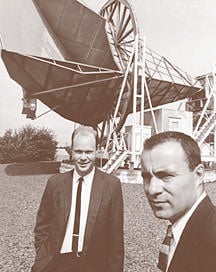 [caption id="attachment_25576" align="aligncenter" width="216" caption="Arno Penzias and Robert Wilson in front of the Horn Antenna. Image Credit: AIP Niels Bohr Library"]