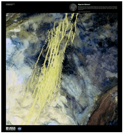 Video: NASA/GSFC. Inset image: Industrial growth in Binhai New Area, China. Sub-feature: Erg Iguidi, an area of ever-shifting sand dunes extending from Algeria into Mauritania in northwestern Africa, one of the chosen top 5 Earth as Art images. NASA/GSFC/USGS.