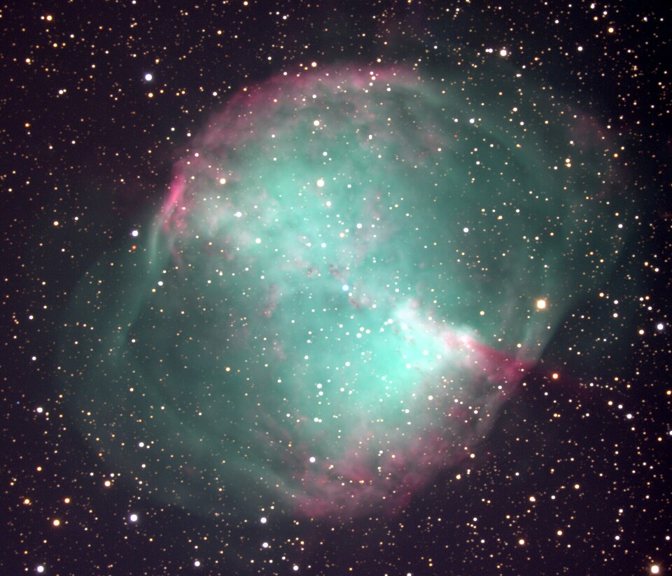 The Dumbbell Nebula, otherwise known as M27 is a fine example of a planetary nebula (Credit :REU program/NOIRLab/NSF/AURA)