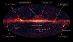 The picture attached to this story is the infrared sky at nine micrometres. The bright stripe extending across the middle of the image is disc of our own Milky Way galaxy. The bright regions in the disc are sites of newly born stars.