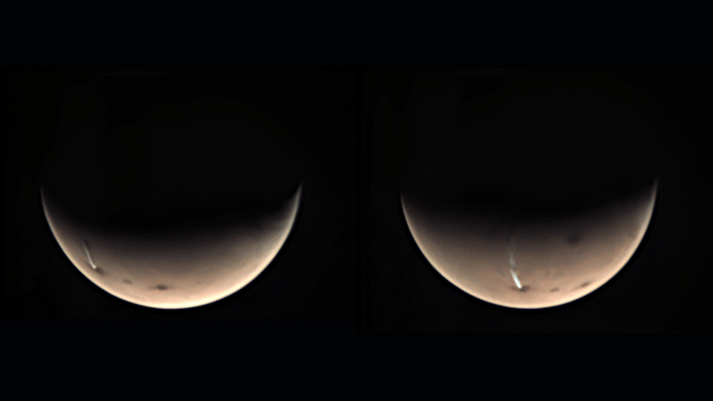 "Luckily for Mars Express, the highly elliptical orbit of the spacecraft, coupled with the wide field of view of the VMC instrument, lets us take pictures covering a wide area of the planet in the early morning," said Ravanis. "That means we can catch it!"