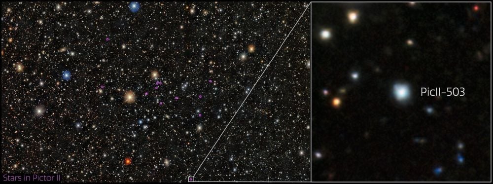 Now a group of researchers have found an elusive Pop II star in the ultra-faint dwarf galaxy Pictor II. Pictor II is over ten billion years old, and one star named PicII-503 is likewise ancient. The discovery is in a paper in Nature Astronomy titled "Enrichment by the first stars in a relic dwarf galaxy." The lead author is Anirudh Chiti, a postdoctoral researcher at the University of Chicago at the time of the work.
