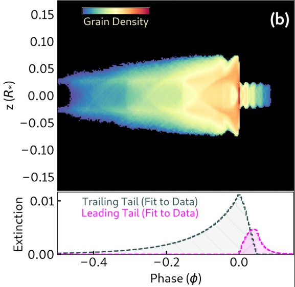 The simulations also showed that while the leading tail is more uniform, the trailing tail varies in height, leading to the unusual transit depth.