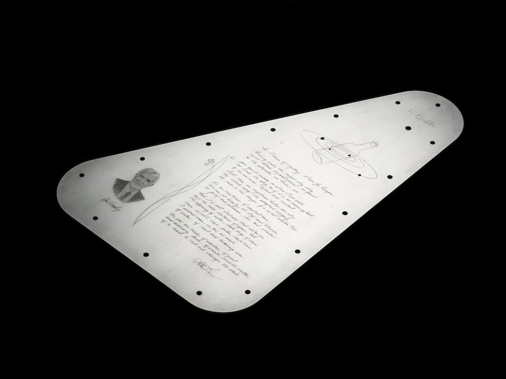One perhaps more controversial inclusion is the famous Drake Equation. Scientists have been divided about the validity and benefit of this equation which was developed by Frank Drake in 1961. Drake's equation attempts to answer the question, using mathematics, of how many advanced civilisations there may be in our Galaxy. Aside from its varied levels of support, the equation has been etched onto the plate as well, on the inward facing side.
