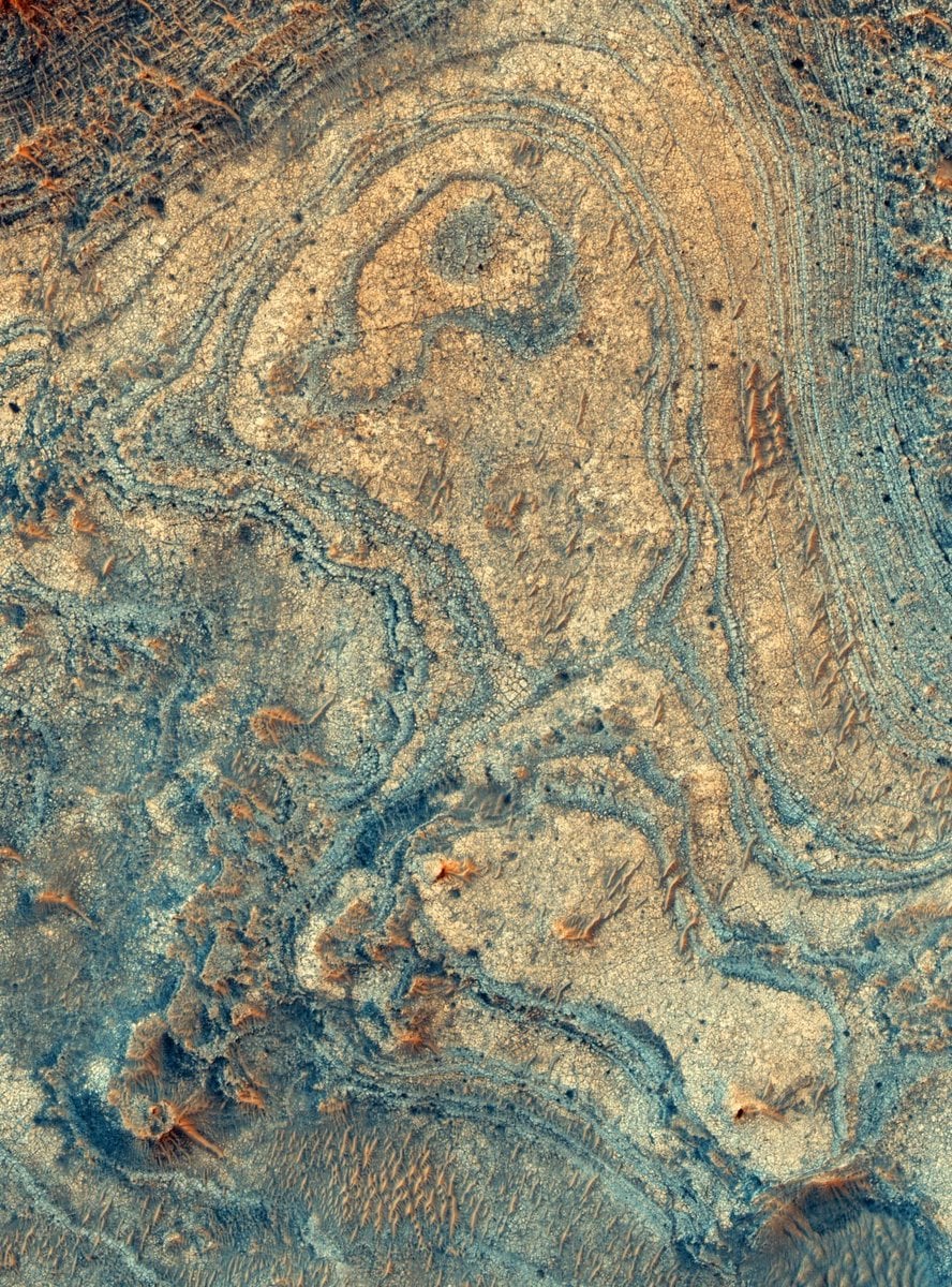 In that initial paper, the authors said that "post-impact faulting of this area has exposed subsurface layers rich in olivine." Over the years, other researchers have come up with other possible explanations. Some have suggested effusive lava flow. Others have suggested that the olivine was dredged up by a massive impact. Perhaps the same impact that created the enormous Isidis Basin where the deposit is located.