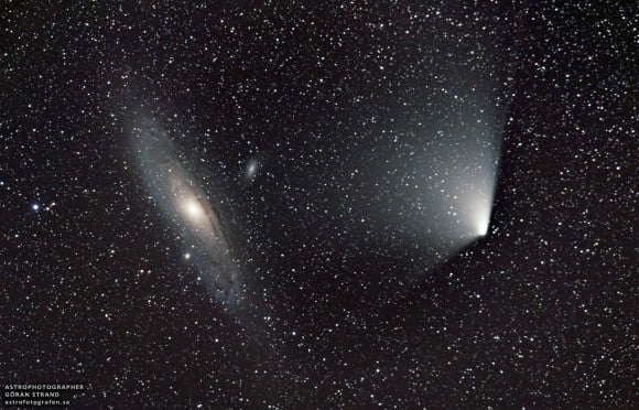 Credit and copyright: Göran Strand.[/caption] Our viewers have been sending in gorgeous pictures of Comet PANSTARRS paired with the Andromeda Galaxy, or M31. Göran Strand shared this view taken from Sweden on April 4, 2013 on