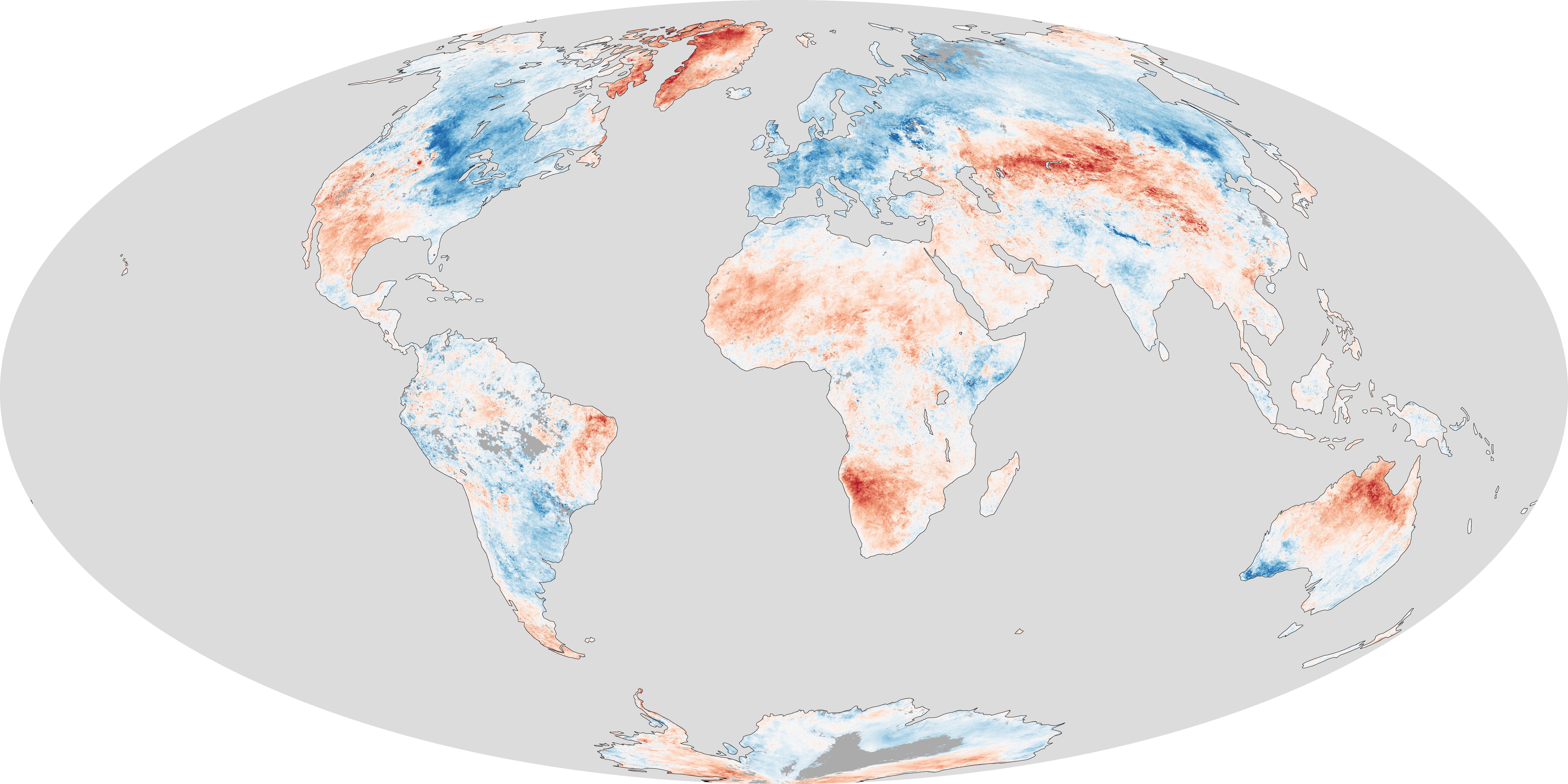 above, based on data from the Moderate Resolution Imaging Spectroradiometer (MODIS) on NASA's Aqua satellite, shows how this affected temperatures in the Northern Hemisphere.